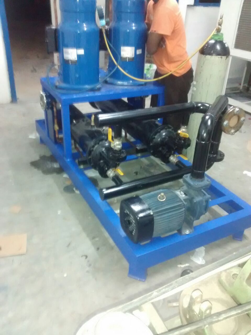 Chilled water or other liquid from the chiller is pumped through process or laboratory equipment. Industrial chillers are used for cooling of products, mechanisms and factory machinery insystems a wide range of industries like. 1. Plastic industry in injection and blow moulding. 2.Metal working cutting oils, welding equipment. 3.Die-Casting and machine tooling, chemical processing 4.Pharmaceutical formulation 5.Paper and cement processing 6.Vacuum systems 7.X-ray diffraction