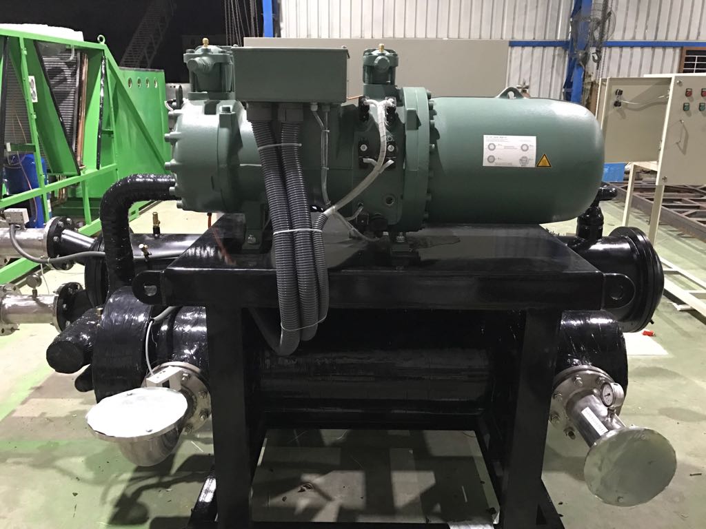 Leading 100TR Water Cooled Chiller Manufactures in Coimbatore and Kerala. DESCRIPTION DETAILS 1. Model KWS 090.14 2. Capacity 100TR 3. Power consumption 85 KW 4. Chilled water Inlet/outlet temperature 12 °C / 7 °C 5. Condenser water Inlet/outlet temperature 32 °C / 36°C 6. No of compressors 1 7. Condenser flow rate, USGPM 393 8. Evaporator flow rate, USGPM 261 9. Refrigerant R134a 10. Operating weight in Kg (approx) 2332 11. Unit dimension L x W x H (mm) (approx) 3045X1120X1765 12. Electrical supply 415 V ±10%, 50Hz, 3P