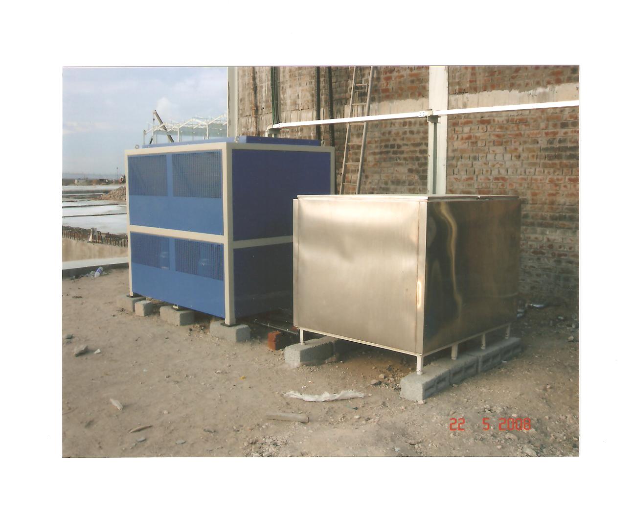 Leading 30TR Air-Cooled Water Chiller with Well Insulated SS Tank Manufactures in Chennai and Bangalore. TECHNICAL SPECIFICATIONS (30TR) 1. System : INDUSTRIAL PROCESS CHILLER 2. Model No : Non-Standard 3. Flow Rate : 18000 LPH. 4. Inlet Temperature From Chiller : 15°C 5. Outlet Temperature To Chiller : 10°C 6. Refrigeration Load : 30TR 7. Cooling Water Requirement : NA 8. Chiller Type : PHE / Shell & Tube 9. Condenser Type : Finned Tube 10. Refrigerant : R-134 A/R404a 11. Refrigeration Compressor : Emerson Copeland / Danfoss 12. Power Consumption : 33 kW 13. Control : Fully automatic, microprocessor based 17. SAFETY INTERLOCKS 1. L P SWITCH 2. H P SWITCH 3. COMPRESSOR 4. DIGITAL TEMPERATURE CONTROL B. COMPRESSOR 1. MAKE Emerson Copeland / Danfoss 2. TYPE Scroll Type D. General Condition 1. DESIGN TEMPERATURE 6°C 2. NOISE LEVEL Less than 75 db at 1.0 m distance