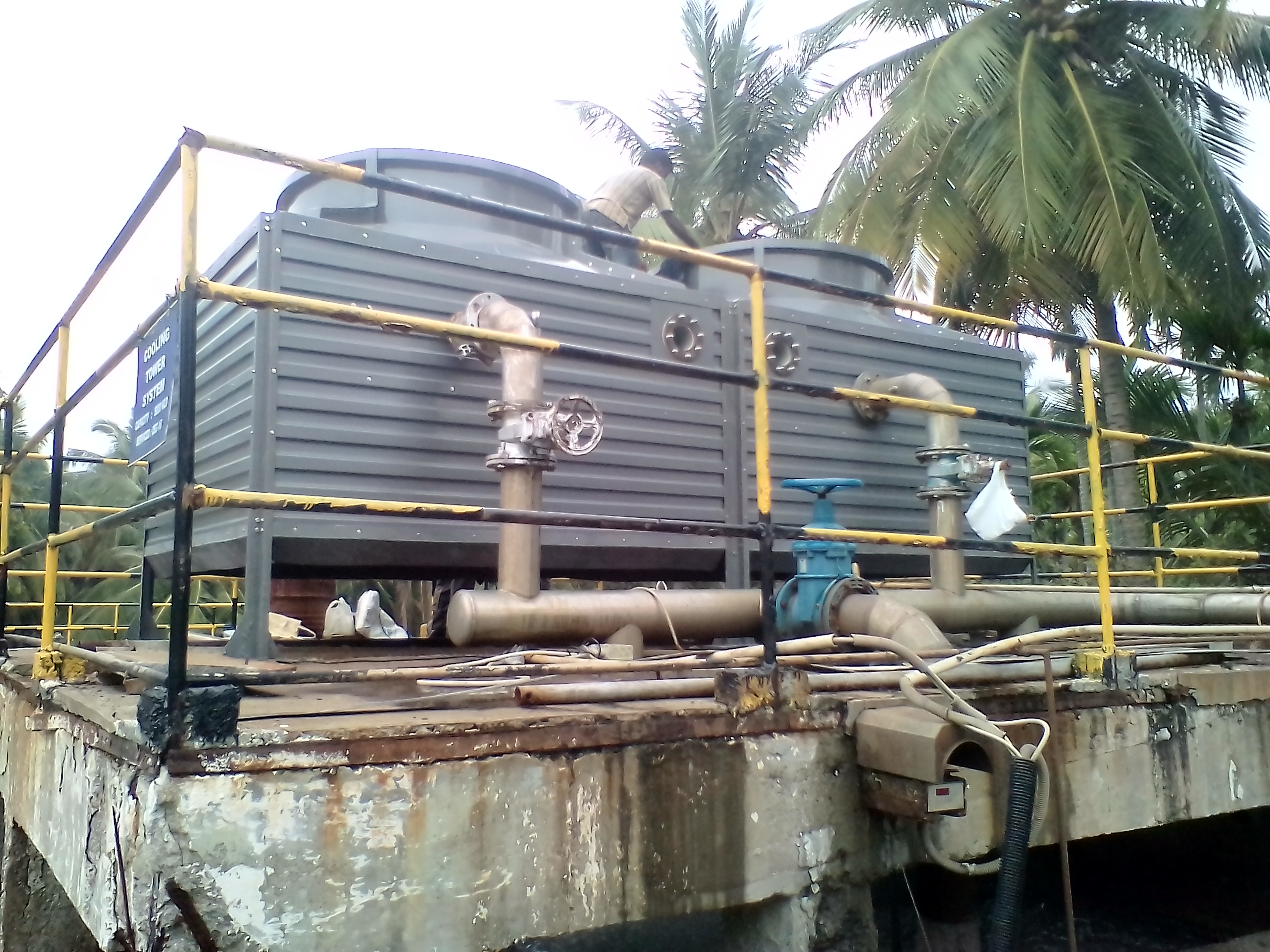 The tower casing is made of tough fibreglass reinforced plastic (FRP) and has sufficient structural strength to withstand high wind velocities and vibrations. UV - stabilised resin is used along with gel coat for longer life. It is resistant to local impacts and even if slight damage occurs, local repairs can easily be done. The portion of casing housing fill and eliminator has a round cross section. The water collection sump, also of FRP, is leak proof & avoids water spillage.