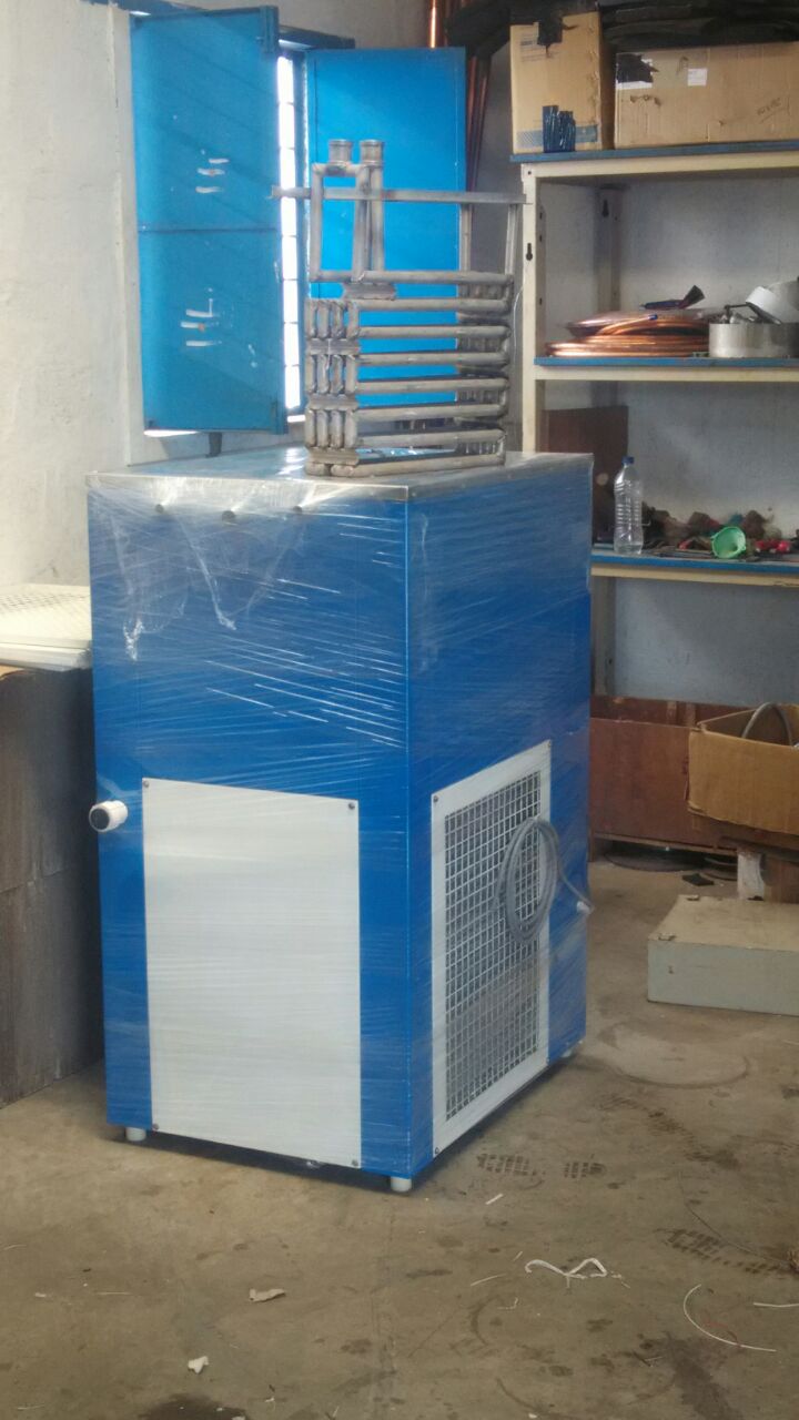 We are the leading manufacturer of 1tr Industrial AIr Cooled water Chillers in Chennai, Coimbatore, Andhra pradesh, Kerala, Karnataka. A chiller is a machine that removes heat from a liquid via a vapor-compression or absorption refrigeration cycle. This liquid can then be circulated through a heat exchanger to cool equipment, or another process stream (such as air or process water). As a necessary by product, refrigeration creates waste heat that must be exhausted to ambience, or for greater efficiency, recovered for heating purposes.[1] Chilled water is used to cool and dehumidify air in mid- to large-size commercial, industrial, and institutional facilities. Water chillers can be water-cooled, air-cooled, or evaporatively cooled. Water-cooled systems can provide efficiency and environmental impact advantages over air-cooled systems.